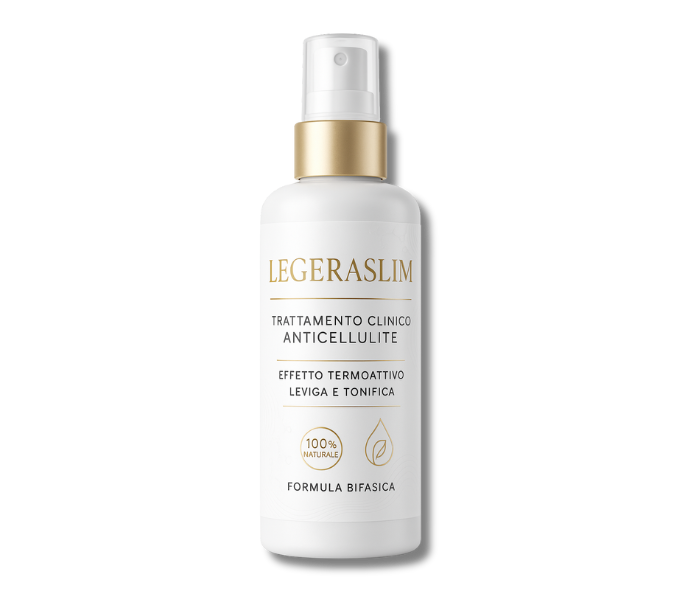 LegeraSlim è uno spray bifasico clinico che sfrutta la sinergia di principi attivi termogenici e lipolitici naturali. La sua azione inizia subito dopo l’applicazione con un leggero effetto di calore e pizzicore, segnale della stimolazione della microcircolazione.
